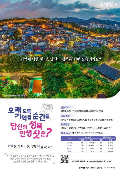 이번 공모전은 국내에 거주하는 내·외국인 누구나 참여할 수 있으며, 출품 부문은 일반 카메라와 스마트폰 두 가지로 구분된다. 2024년 9월 21일 이후 성북구에서 촬영된 사진이면 응모할 수 있다.