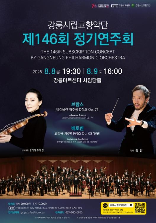 [중앙뉴스라인, 우제헌기자] 강릉시립교향악단은 오는 8월 8일 오후 7시 30분, 8월 9일 오후 4시 강릉아트센터 사임당홀에서 제146회 정기연주회를 개최한다.