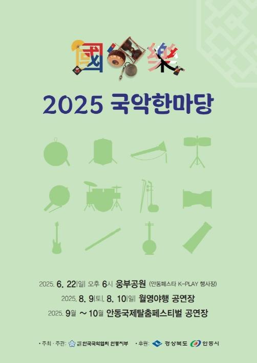 (사)한국국악협회안동지부가 주관하는 ‘2025 국악한마당’ 공연이, 여름 대표 야간문화행사인 월영야행 기간 중 8월 9일, 10일 양일간 오후 6시 개목나루 공연장에서 펼쳐진다.