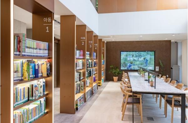 울창한 숲속에 조성된 도서관은 높고 탁 트인 층고와 중앙의 대형 독서테이블, 통유리창으로 들어오는 숲의 풍경이 조화를 이루며 방문객에게 깊은 몰입과 휴식을 동시에 선사한다. 주민들의 꾸준한 발걸음 속에 도서관은 지난 3년간 지역의 독서문화 확산에 기여해왔다.
