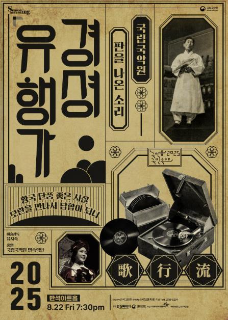 '경셩유행가 – 판을 나온 소리'는 1920~30년대 유성기 음반의 등장과 함께 당대 대중의 사랑을 받았던 스타 명창들의 민요, 판소리, 기악, 병창 등 대표 작품들을 국립국악원 민속악단 성악 단원들의 목소리로 재현한 무대다. 100여 년 전의 대중성과 감성을 현대의 시각으로 풀어내며 전통 성악의 매력을 새롭게 조명한다.