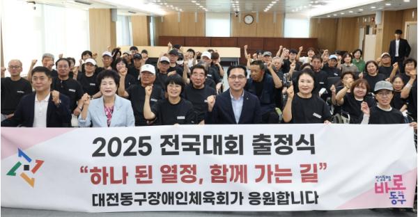 [중앙뉴스라인, 우제헌기자] 대전 동구는 5일 구청 대회의실에서 ‘2025년 동구장애인체육회 전국대회 출정식’을 개최했다고 밝혔다.