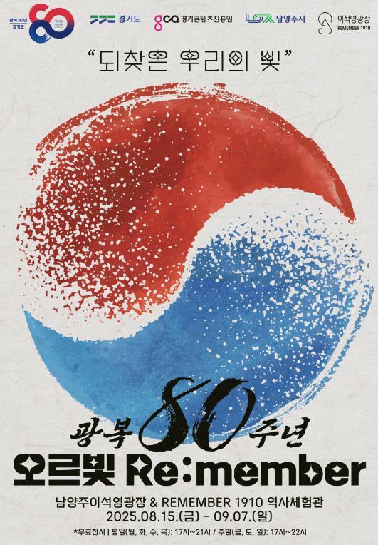 [중앙뉴스라인, 우제헌기자] 경기도가 광복 80주년을 맞아 잃어버렸던 빛을 되찾은 역사적 순간을 최첨단 문화기술 콘텐츠로 재조명하고자 8월 15일 광복절부터 9월 7일까지 남양주시 이석영광장과 리멤버(REMEMBER)1910 역사체험관 일대에서 문화기술 콘텐츠 전시 브랜드 ‘오르:빛’의 네 번째 체험형 전시 ‘오르빛 리멤버(Re:member)’를 개최한다.