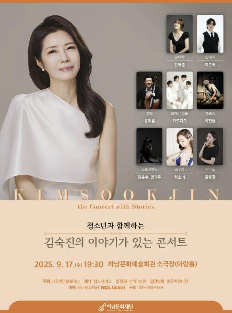 (재)하남문화재단은 오는 9월 17일 하남문화예술회관 소극장에서 청소년과 함께하는 〈김숙진의 이야기가 있는 콘서트〉를 개최한다고 밝혔다