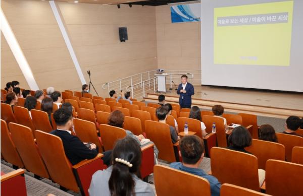 이날 강의는 이영철 화가의 ‘미술로 보는 세상’이라는 주제로, 예술로 우리 일상 속 삶의 가치와 동심, 행복의 의미를 새롭게 조명하고 공간, 디자인, 역사, 심리 등 다양한 관점으로 미술 작품과 세상을 재해석하여 참석한 예술인들로부터 깊은 공감을 이끌어냈다.