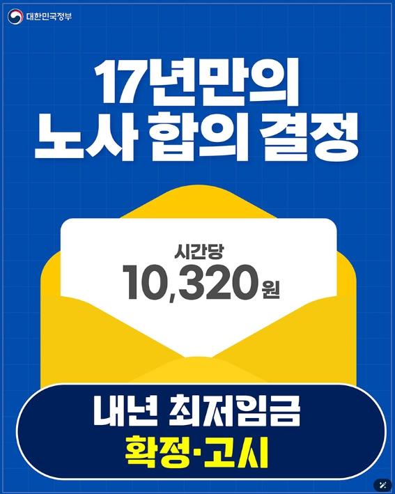 17년 만에 노사 합의로 결정! 시간당 1만 320원.