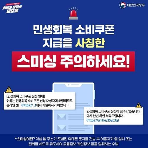 행정안전부, 민생회복 소비쿠폰 스미싱 주의!