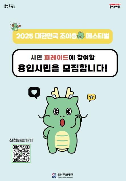 [중앙뉴스라인, 우제헌기자] 용인문화재단은 오는 9월 27일 개최되는 『2025 대한민국 조아용 페스티벌』 시민 퍼레이드 참여자를 공개 모집한다.