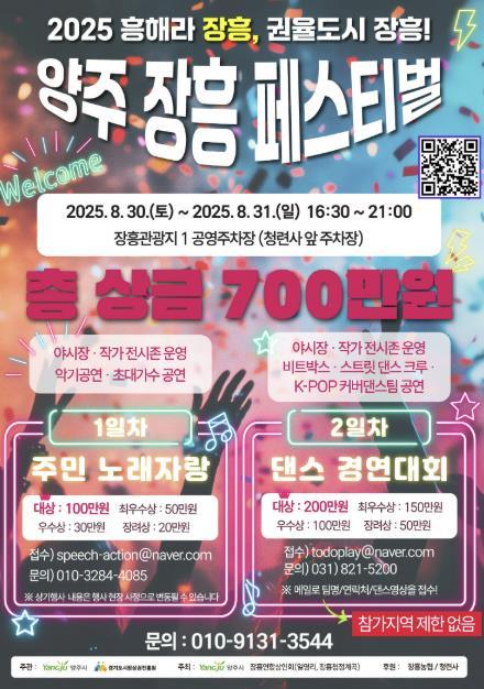양주시, '장흥 페스티벌' 8월 30일 개최…주민 참여형 축제로 상권 활력 불어넣는다