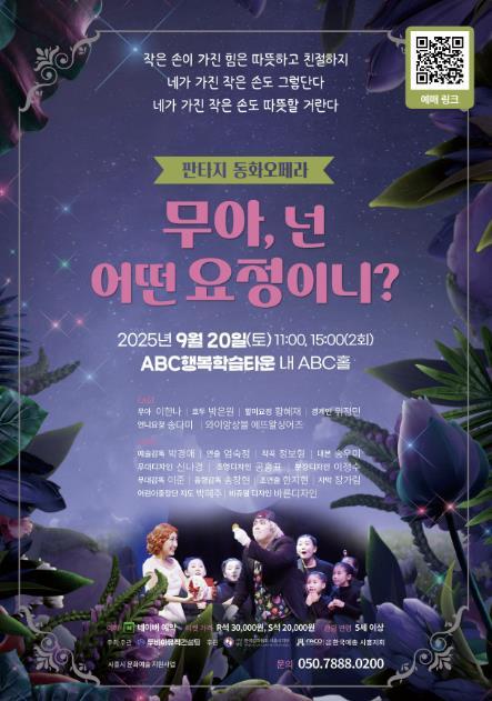 [중앙뉴스라인, 우제헌기자] 시흥시가 ‘2025년 지역문화예술 활성화’ 사업의 하나로 지원하고 두비아뮤직컨설팅에서 주최ㆍ주관하는 판타지 동화 오페라 ‘무아, 넌 어떤 요정이니?’가 오는 9월 20일 오전 11시와 오후 3시, 총 2회에 걸쳐 시흥ABC행복학습타운 ABC홀에서 열린다.
