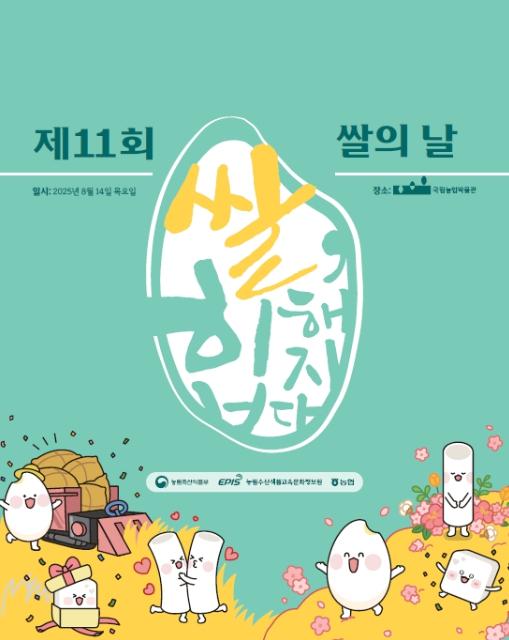 [중앙뉴스라인, 우제헌기자] 농림축산식품부는 오는 8월 18일 제11회 쌀의 날을 맞아 쌀의 우수성을 알리고 쌀 중심의 식습관 확산과 쌀 소비 활성화를 위해 8월 14일에 수원 국립농업박물관에서 기념행사를 진행한다.