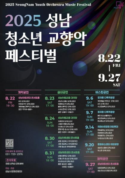 이후 페스티벌 일정은 △8월 23일과 24일 성남아트리움 대극장 △8월 30일과 31일 성남아트센터 콘서트홀 △9월 6일과 7일 정자동 다목적광장 △9월 14일 위례수변공원 야외무대 △9월 20일 중원유스센터 야외광장 △9월 27일 성남아트센터 콘서트홀 등이다.