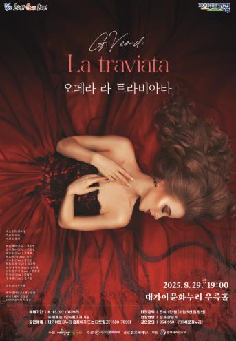 [중앙뉴스라인, 우제헌기자] 고귀한 사랑과 이별, 그리고 희생의 감정을 서정적으로 그려낸 베르디 오페라 ‘라 트라비아타’가 오는 8월 29일 오후 7시, 대가야문화누리 우륵홀 무대에 오른다.