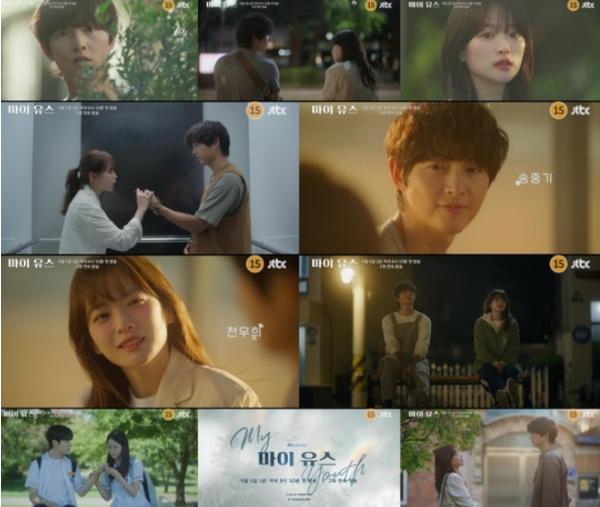 오는 9월 5일(금) 첫 방송되는 JTBC 새 금요시리즈 ‘마이 유스’(극본 박시현, 연출 이상엽·고혜진, 제공 SLL, 제작 하이지음스튜디오) 측은 13일 열아홉 첫사랑 선우해(송중기 분), 성제연(천우희 분)의 재회가 담긴 1차 티저 영상을 공개했다.