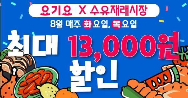 [중앙뉴스라인, 우제헌기자] 서울 강북구는 강북구 대표 전통시장인 수유재래시장이 국내 배달 플랫폼 ‘요기요’에 입점한 것을 기념해, 오는 8월 31일까지 초특가 할인행사를 진행한다고 밝혔다.