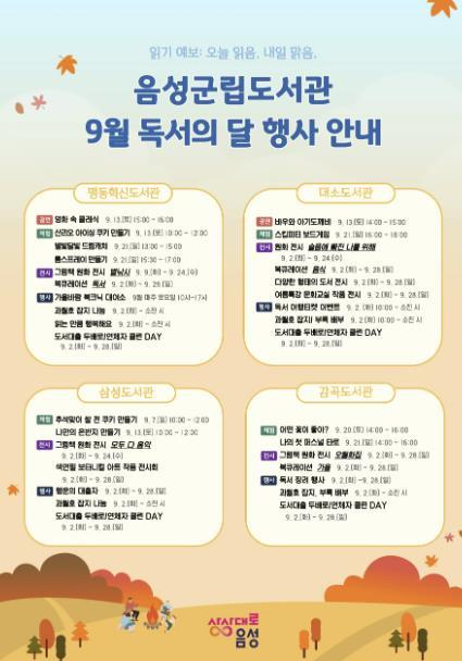 음성군립도서관, 2025년 '독서의 달' 행사 운영