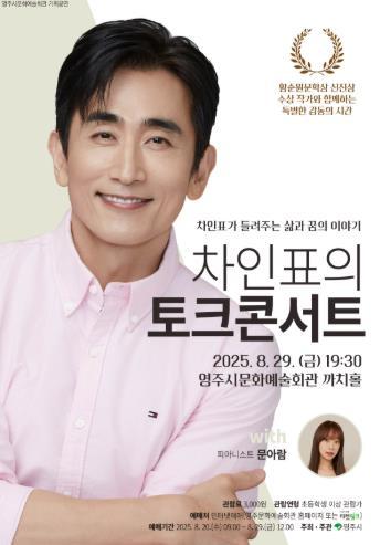 [중앙뉴스라인, 우제헌기자] 영주시문화예술회관은 오는 8월 29일 오후 7시 30분 까치홀에서 2025 기획공연 '차인표의 토크 콘서트(with 문아람)'를 개최한다고 밝혔다.