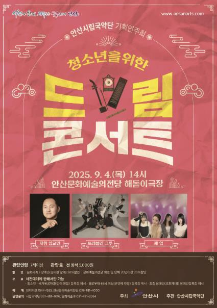 안산시립국악단, 9월 4일 청소년을 위한 드림 콘서트 개최