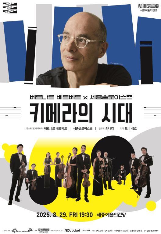 8월 29일은 ‘한국인이 가장 사랑하는 문학 작가’ 베르나르 베르베르가 무대에 오른다. 신작 ‘키메라의 땅’을 모티브로 한 공연 ‘키메라의 시대’에서 그는 직접 집필한 대본에 해설을 더하고, 세종솔로이스츠가 연주하는 특별한 협연을 선사한다.