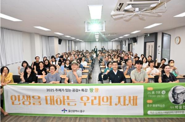 [중앙뉴스라인, 우제헌기자] 울산 중구가 지난 8월 18일 오후 7시 중구평생학습관 다목적실에서 ‘8월 주제가 있는 공감+ 명사 초청 특강’을 개최했다.