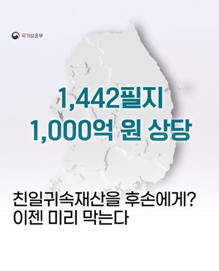 이를 바탕으로 국가보훈부는 잔여재산 842필지에 대한 전수 조사를 통해 친일귀속재산의 후손 재매각 추정 재산과 동일한 유형의 재산 118필지를 선별, 집중관리에 나설 방침입니다.