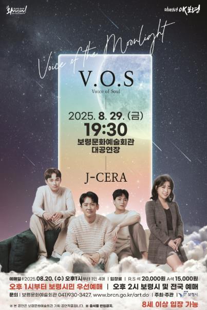[중앙뉴스라인, 우제헌기자] 보령시는 29일 오후 7시 30분 보령문화예술회관 대공연장에서 V.O.S · J-CERA ‘Voice of the Moonlight’ 콘서트를 개최한다고 밝혔다.
