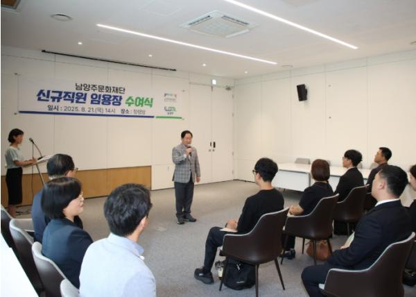 [중앙뉴스라인, 우제헌기자] 남양주시는 21일 청렴방에서 남양주문화재단 신규 직원 11명에 대한 임용장 수여식을 개최했다.