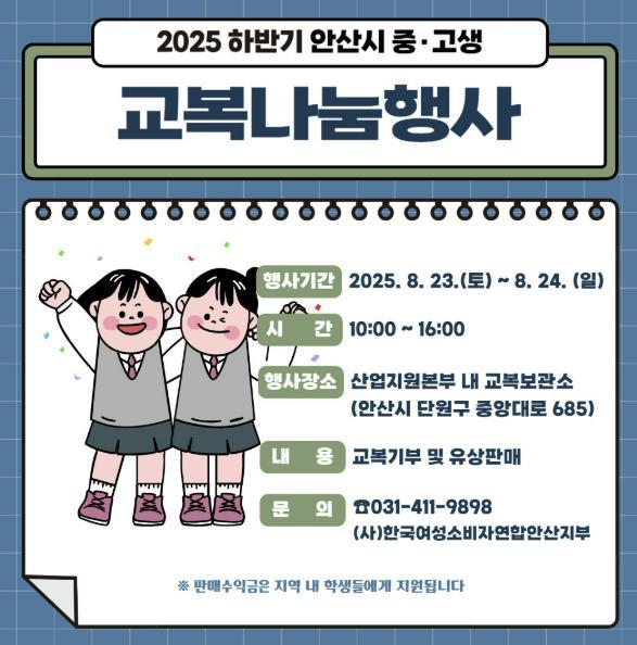 안산시, 23~24일 교복나눔 행사… 가계 부담 줄이고 나눔 실천