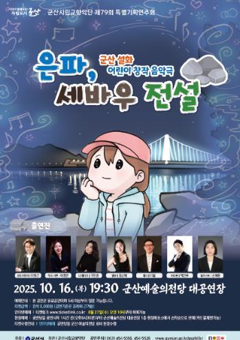 특히 이번 공연은 군산의 대표 설화 ‘세바우 전설’을 음악과 이야기로 새롭게 풀어낸 창작 음악극으로, 지역 문화의 가치를 재조명하는 뜻깊은 무대가 될 예정이다.