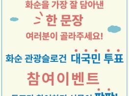 투표율은 현재 매우 높은 편으로 화순 관광에 대한 국민적 관심과 열기를 실감하게 한다. 선정된 10개의 슬로건은 ▲천년의 숨결, 화순 ▲See you soon, 화순 ▲그대와 나의 화순 ▲천불천탑의 미소, 화순 ▲힐링의 정석, 화순 ▲다시 화사한 순간, 화순 ▲화순, 시간을 걷는 여행 ▲고인돌 품고, 적벽 물든 화순 ▲See you hwaSOON! ▲'화'려한 문화 '순'수한 자연, 힐링화순이다.