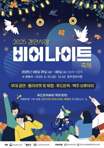 이번 축제는 여름밤의 시원한 정취 속에서 전통시장만의 새로운 매력을 느낄 수 있도록 기획된 야간형 콘텐츠 축제로, 경안시장을 찾는 시민과 관광객에게 색다른 즐길 거리를 제공한다. 이와 함께 젊은 세대와 가족 단위 방문객이 함께 즐길 수 있는 다채로운 프로그램을 통해 전통시장이 단순한 장보기 공간을 넘어 지역의 문화·여가 중심지로 자리매김할 수 있도록 운영될 예정이다.