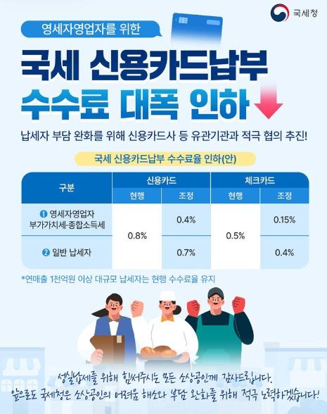 국세청, 영세 자영업자 국세 신용카드납부 수수료 대폭 인하