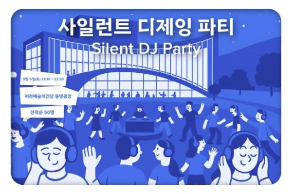 [중앙뉴스라인, 우제헌기자] 제21회 제천국제음악영화제 기간인 오는 9월 6일 밤 9시 30분, 제천예술의전당 동명광장에서 영화제가 준비한 특별 프로그램‘사일런트 디제잉 파티’가 개최된다.