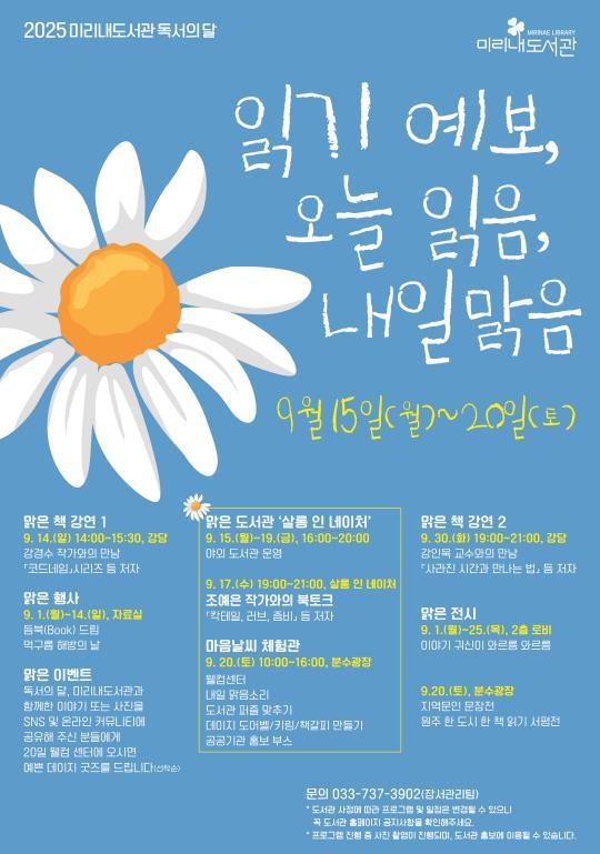 원주시 미리내도서관, 2025년 독서의 달 행사 운영