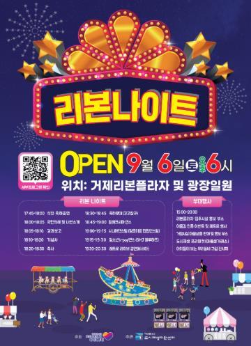 거제시는 오는 9월 6일 오후 3시부터 8시 30분까지, 거제리본플라자 및 광장 일원에서 도시재생 행사 ‘리본 나이트(Re-born Night)’를 개최한다고 밝혔다.