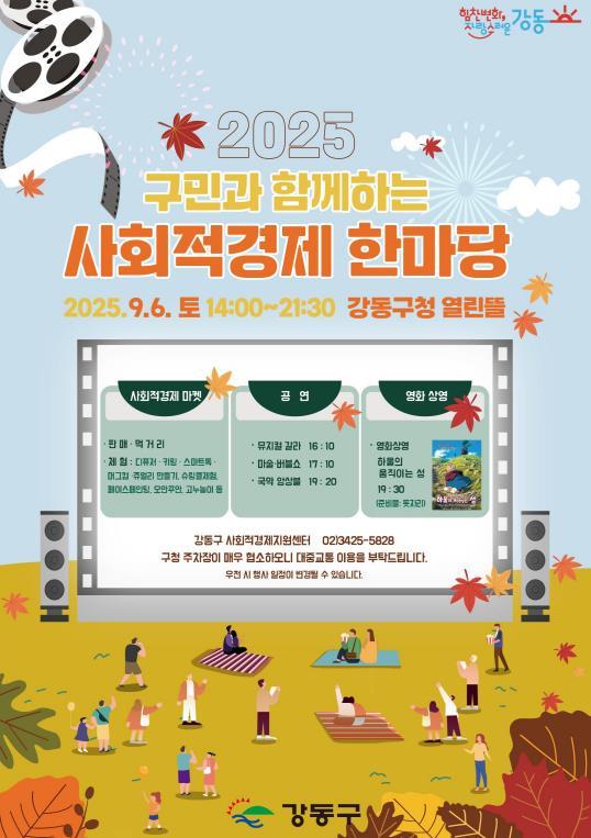 [중앙뉴스라인, 우제헌기자] 강동구는 오는 9월 6일 오후 2시 구청 앞 잔디광장 열린뜰에서 ‘ 2025 사회적경제한마당’을 개최한다고 밝혔다.