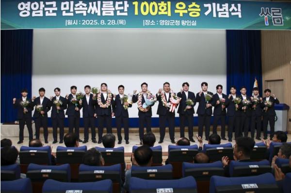기념식에서 참석자들은 영암군민속씨름단의 100회 우승 영상 상영, 기념패·꽃다발 전달 등으로 영광의 역사를 돌아봤다.