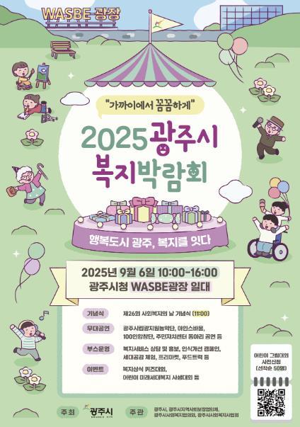 [중앙뉴스라인, 우제헌기자] 광주시는 오는 9월 6일 광주시청 WASBE광장에서 ‘가까이에서 꼼꼼하게, 2025 광주시 복지박람회’를 개최한다고 29일 밝혔다.