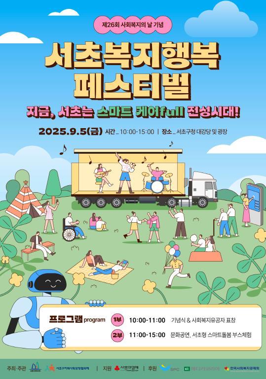 [중앙뉴스라인, 우제헌기자] 서울 서초구는 오는 9월 5일, 제26회 사회복지의 날을 맞아 구청 2층 대강당과 광장에서 ‘서초복지행복페스티벌’을 개최한다고 밝혔다.