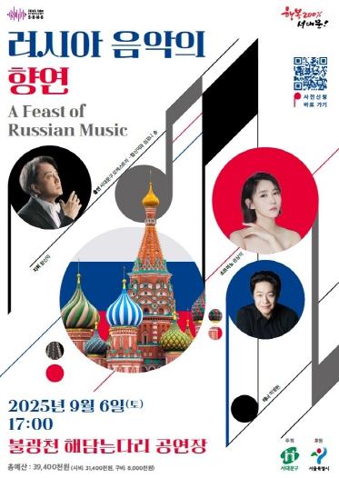 [중앙뉴스라인, 우제헌기자] 서대문구가 이달 6일 토요일 오후 5시 불광천 해담는다리 공연장에서 주민들과 함께하는 ‘러시아 음악의 향연 – A Feast of Russian Music’을 개최한다.