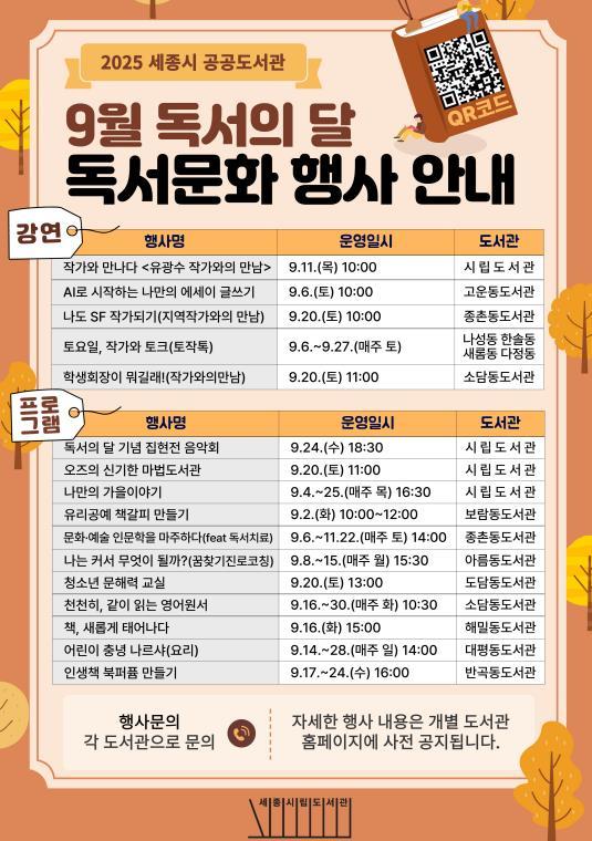 책 향기 가득한 9월, 세종시 도서관에서 만나요