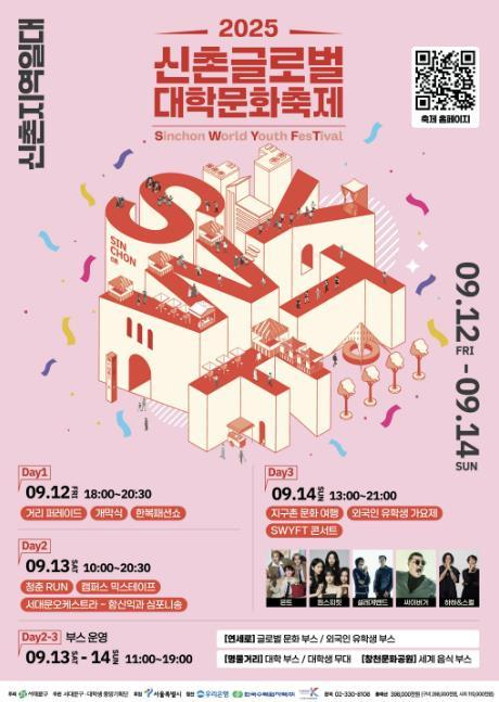 올해로 3회를 맞는 이 축제는 ‘글로벌 웨이브, 신촌 바이브(Global Wave, Sinchon Vibe)’란 캐치프레이즈 아래 서대문구가 주최하고 대학생중앙기획단이 구와 공동 주관한다.