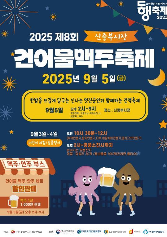 구 관계자는 “서울의 대표 전통시장인 중부·신중부 시장에서 열리는 건맥 축제에 방문해, 질 좋은 건어물과 정겨운 시장의 매력을 직접 느껴보시기 바란다”고 전했다.