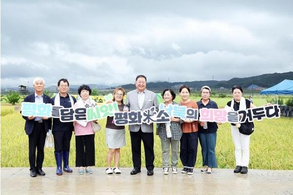 김경일 파주시장은 “‘평화를 담은 씨앗! 남북의 희망을 거두다!’라는 이번 행사의 표어처럼 남과 북이 만난 평화의 상징이자 희망의 결실인 ‘평화미(米)소’ 평원벼를 안정적으로 생산할 수 있는 기반을 단단히 구축하고 더 많은 사람들에게 가까이 다가갈 수 있도록 하겠다”라고 말했다.