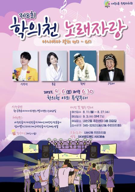 [중앙뉴스라인, 우제헌기자] 의왕시 내손2동 주민자치회가 오는 9월 6일 학의천 일대에서 ‘제8회 학의천 노래자랑’을 개최한다.