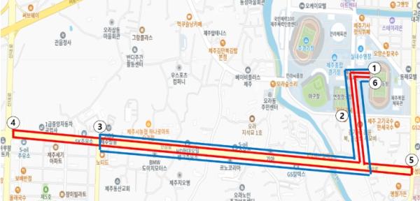행사 구간인 애향운동장~한라명동칼국수~보건소 사거리 서측~마리나 사거리 동측 도로는 오전 9시부터 낮 12시 30분까지 양방향 전면 통제된다. 응급상황 통행을 위한 비상차선은 확보할 예정이다.