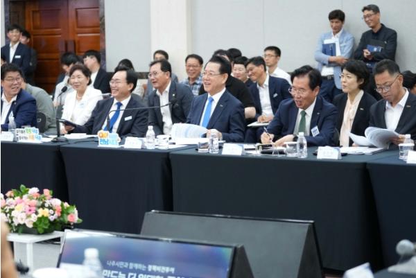 이외에도 ▲노후 버스정보안내기 교체 지원 ▲영구 논두렁(물관리 PE필름) 설치 지원 ▲여성농어업인 행복바우처 연령제한 개선 ▲저비용 맞춤형 스마트팜 시범사업 지원 ▲도내 소재 기업 입찰 제도 개선 등에 대한 건의도 이어졌다.
