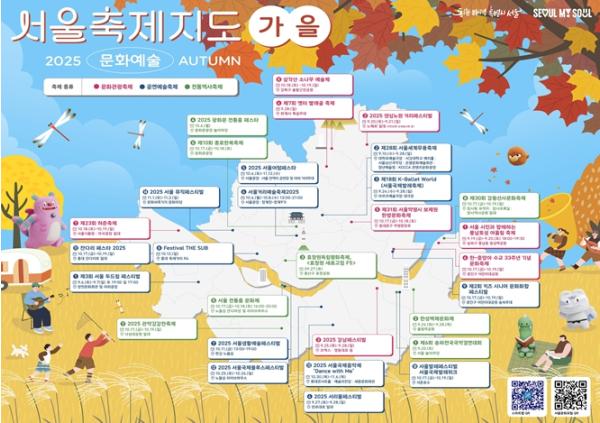 김태희 서울시 문화본부장은 “가을은 축제를 즐기기에 가장 좋은 계절인 만큼, 시민 여러분이 보다 쉽고 편리하게 행사를 즐기실 수 있도록 '서울축제지도' 가을편을 마련했다”며 “앞으로도 자치구와 민간예술단체의 축제를 적극 지원해 서울의 축제문화산업을 발전시키고, 시민들이 일상 속에서 자연스럽게 문화예술을 누릴 수 있도록 힘쓰겠다”라고 말했다.