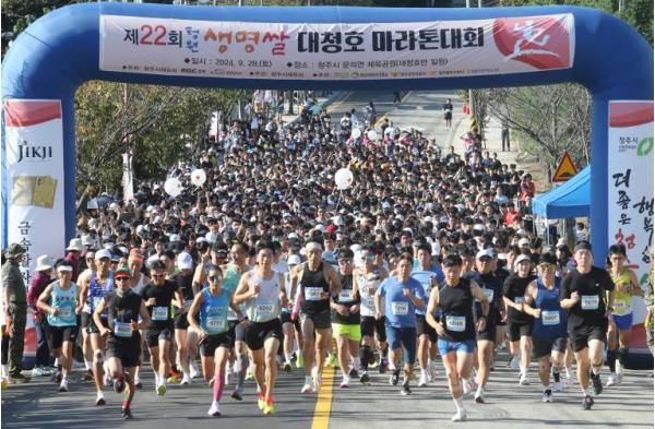 청원생명쌀 대청호마라톤 대회는 대한육상연맹 인증 풀코스 공인대회로 대청호와 청남대 일대를 달리며 아름다운 자연경관을 감상할 수 있어 매년 참가자가 늘고 있다.
