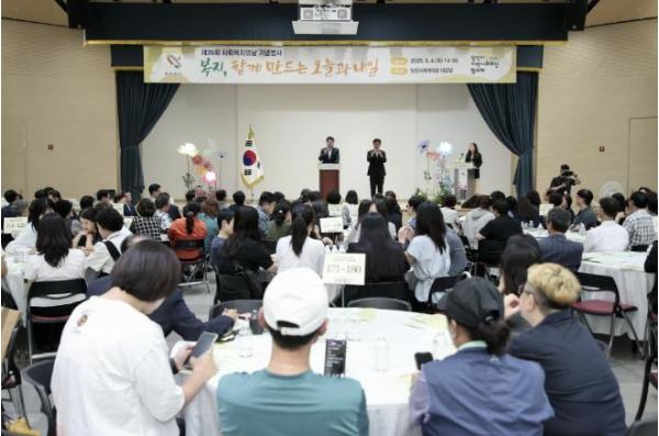 이번 행사는‘복지, 함께 만드는 오늘과 내일’이라는 슬로건으로 사회복지 현장에서 헌신하는 종사자의 노고를 격려하고 더 나은 복지 공동체를 만들기 위해 진행했으며, △국민의례 △유공자 표창 △기념사 △민관협력 우수사례 발표 △화합의 시간순으로 이어졌다.
